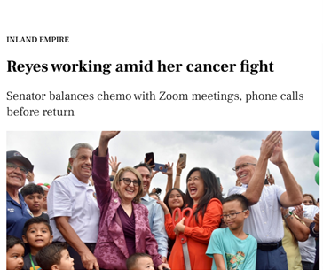 Reyes working amid her cancer fight: Senator balances chemo with Zoom meetings, phone calls before return